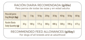 com vitaminas e minerais adicionados, indicado em caso de intolerâncias alimentares, para todas as raças em idade adulta.